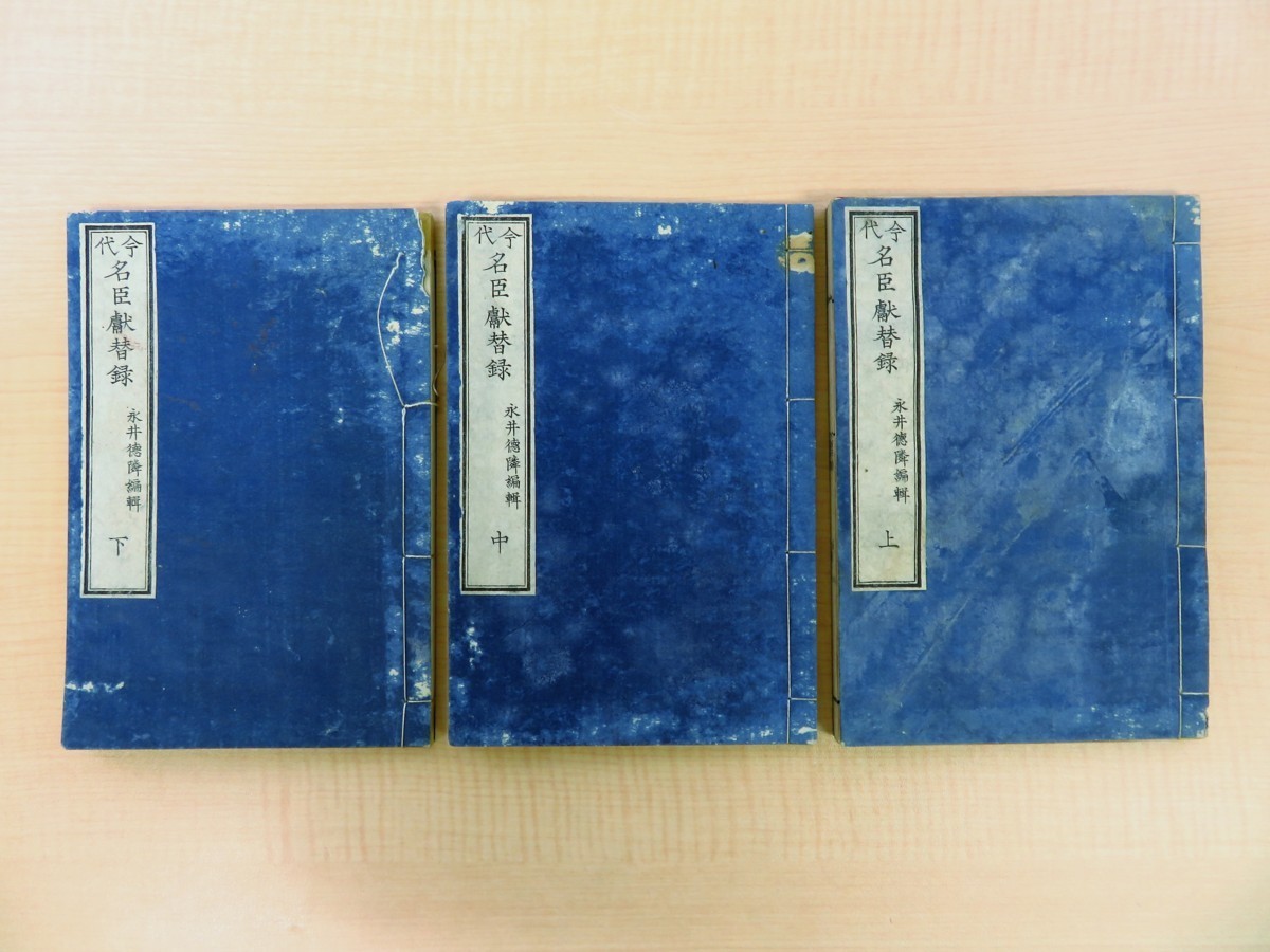 > 永井徳鄰『今代名臣献替録』(全3冊揃)明治12年 明治時代和本 江戸時代幕末-明治初期名士録 徳川慶喜 大久保利通 勝海舟 榎本武揚ら