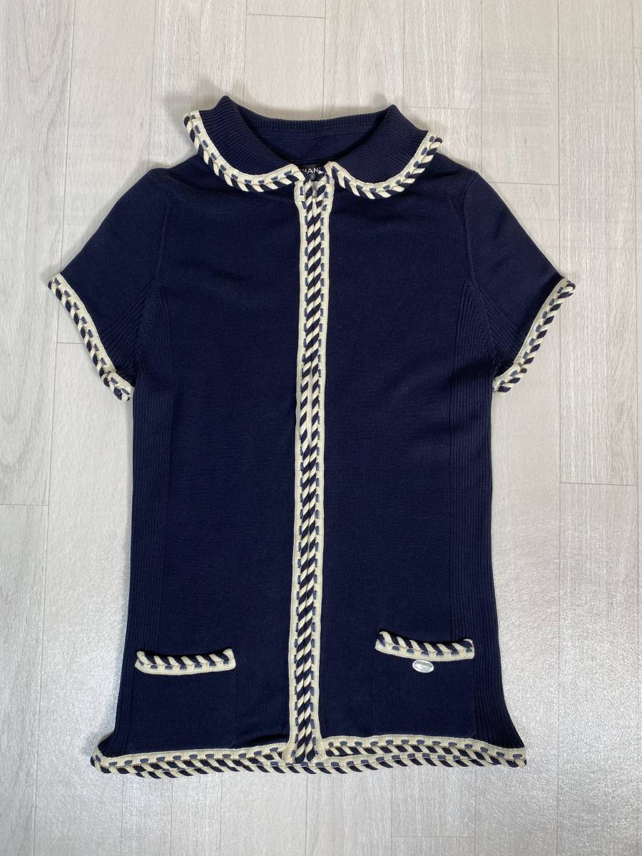 > ★06Pシャネル CHANEL ネイビー 半袖 カーディガン ジップアップ ジャケット カットソー トップ 38