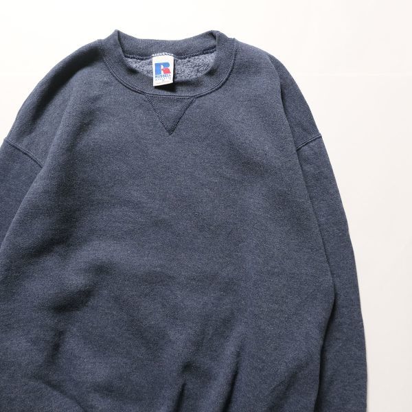 > 90's メキシコ製 ラッセル ソリッドカラー クルーネック スウェット シャツ 青灰系 (M) 無地 スエット 90年代 旧タグ オールド RUSSELL