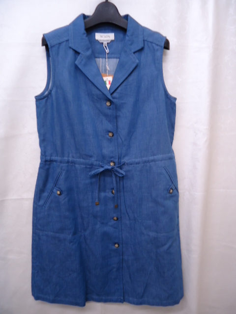 > 【KCM】sta-248-38★新品★【SCAPA/スキャパ】綿麻 デニム風 ノースリーブ ワンピース ブルー系 サイズ 38 レディース