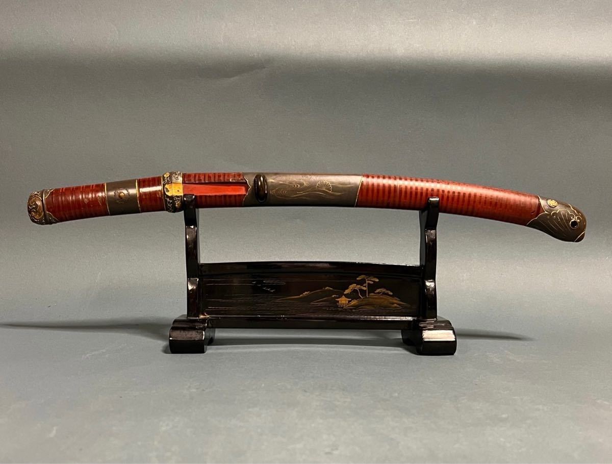 - ◆ 朱漆塗鞘 銀金具短刀拵 揚羽蝶紋 時代物◆