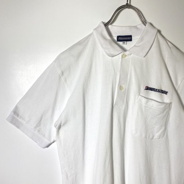- 90s ビンテージ ブリヂストン ポロシャツ Mサイズ 白 匿名配送 ブリジストン