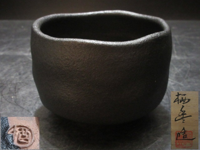 - 寒川栖豊 造 紀州焼 那智黒 茶碗 共箱