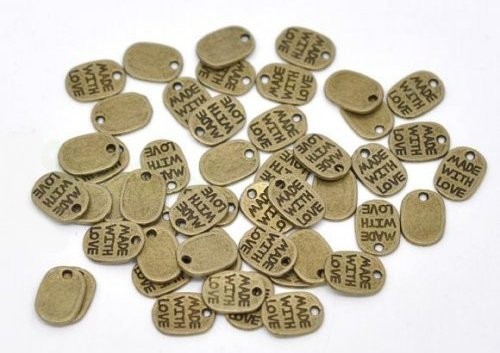 - メタルチャーム200個入アクセサリーパーツ(アンティークブロンズカラー)Made with Loveミニチャーム11mm×8mm