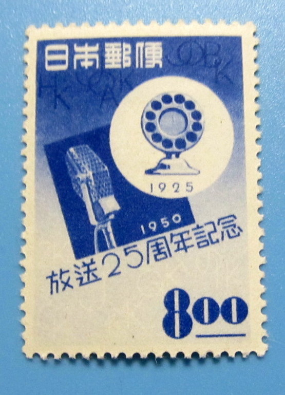 - 1950年 放送25周年記念 8円 ヒンジ跡 裏のり 未使用