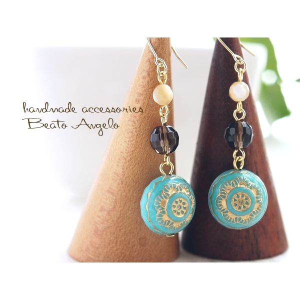 - ◆◆+angelo+アクリル パンケーキとスモーキークォーツのピアス(p-012)ターコイズ G 天然石