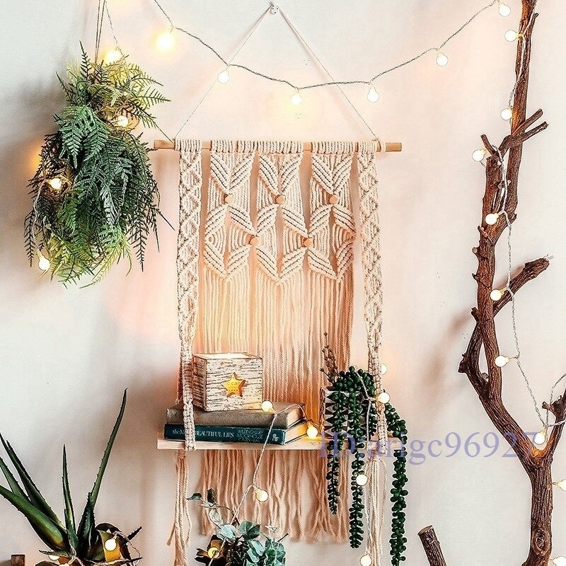 > E870★手織り タペストリー 装飾 ラック 壁掛け 収納 飾り棚 寝室 リビング マクラメ インテリア アジアン雑貨 ギフト