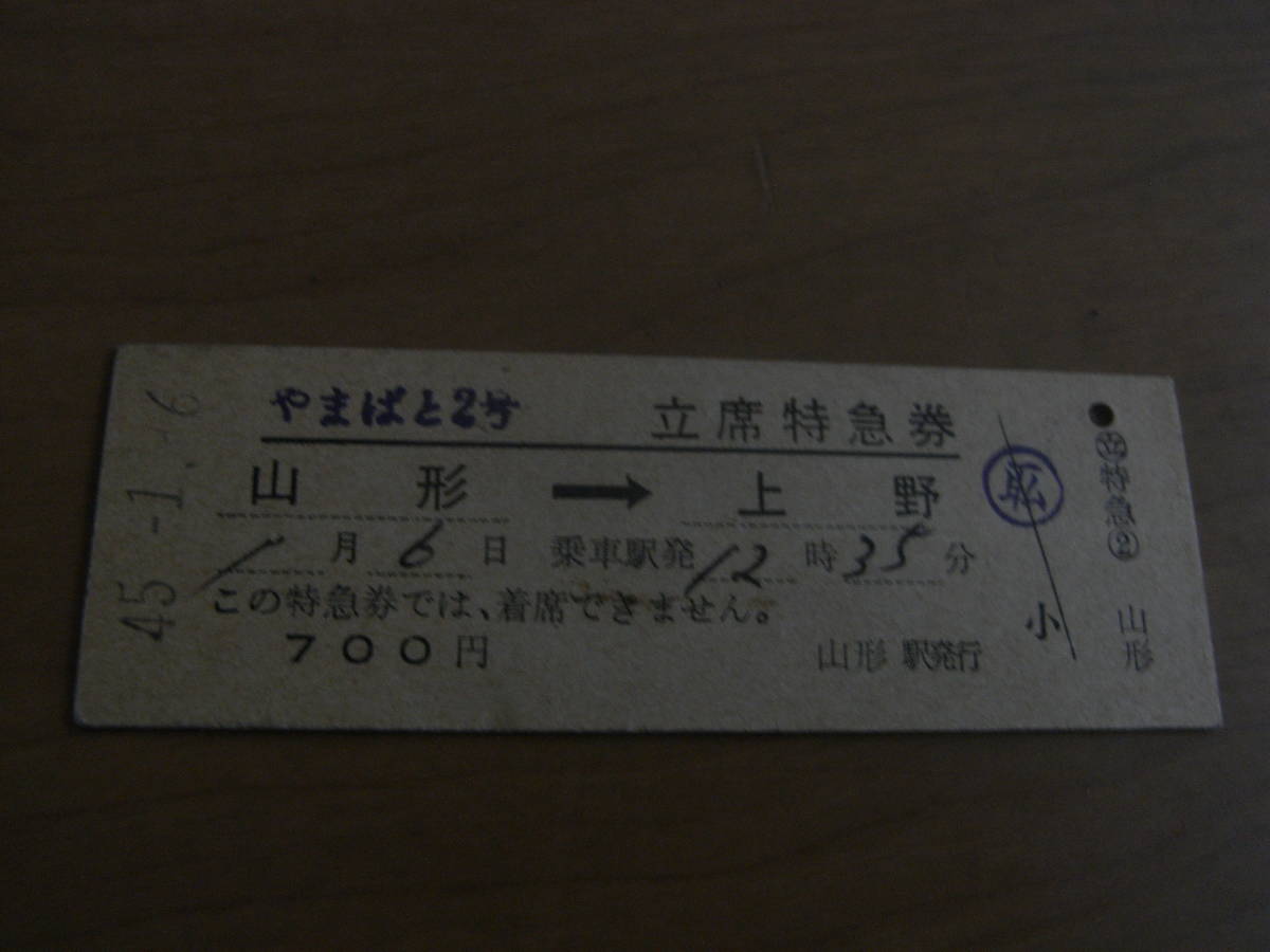 - やまばと2号 立席特急券 山形→上野 昭和45年1月6日発行 山形駅発行
