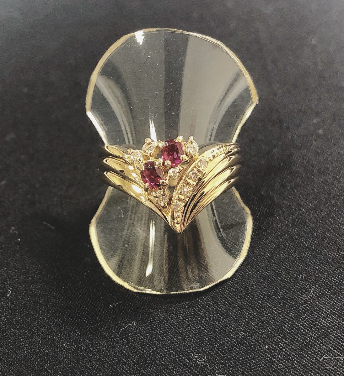 > 【質屋 尾張屋商店 東京】 ☆仕上済☆ 三越 K18YG ルビーダイアレディースリング #12.5 0.33ct 0.13ct