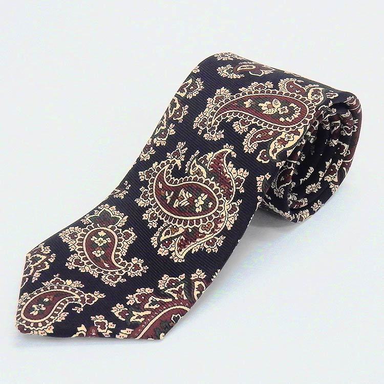 - 英国ADAMLEY生地使用/京都産 プリントネクタイ ネイビー×ワイン ペイズリー 絹100% 日本縫製 KV-ADM12
