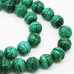 - 送料無料★天然石 パワーストーン マラカイト・孔雀石 丸玉彫刻デザイン入りビーズ 10ミリ 1本