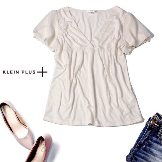 > ☆☆ 美品 イトキン (株) KLEIN PLUS+ クランプリュス ☆☆ 可愛いシフォン切り替え タック・ストレッチカットソー 40号 L 春 夏 22A08