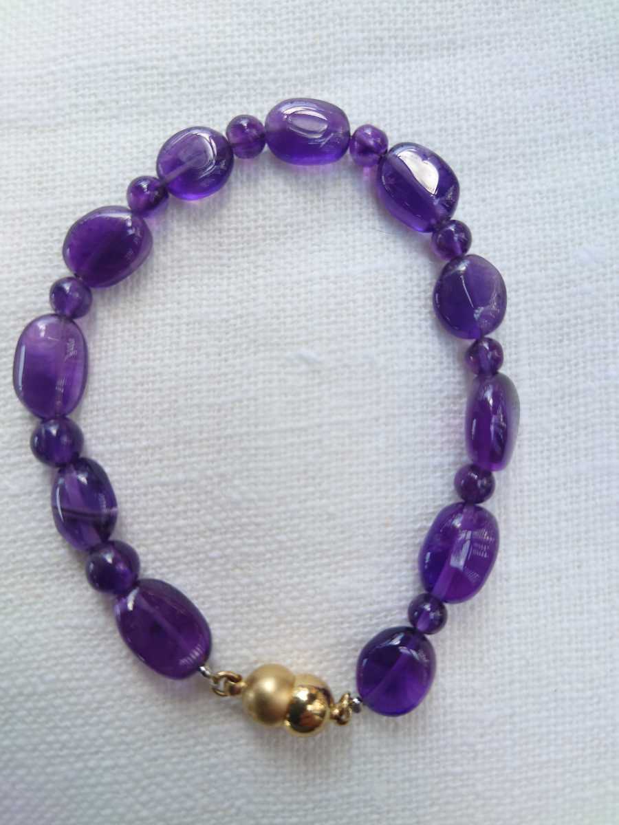 - 天然石 アメジスト パワーストーン ブレスレット マグネット式 2月誕生石
