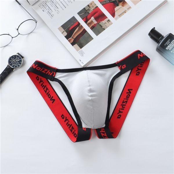 - 送料無料 匿名発送!Oバックショーツ Vバック Tバック パンツ パンティー オープンバック ジョックストラップ グレー C0049 L