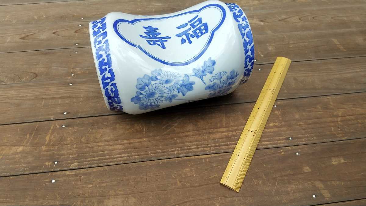 - 陶枕 菊と松竹梅、福寿文字 印判手 古民具 大正~昭和初期頃