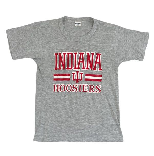 - 70's 80’s 米国製 MADE IN USA イーストポート EASTPORT Tシャツ INDIANA HOOSIERS 3段 グレー サイズM [ta-0485]