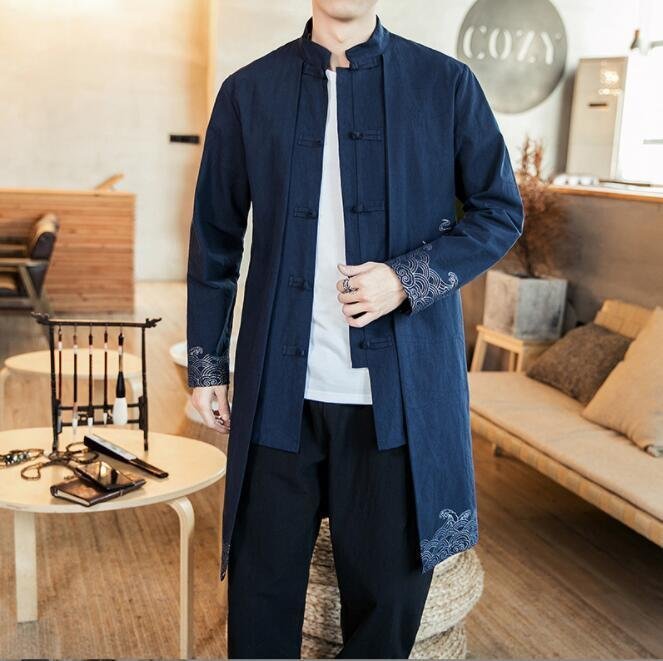 - HSM612★新作春夏秋 カーディガン メンズ ロング丈ジャケット 涼しい お兄系 大きいサイズ 刺 鶴 チャイナ風 色サイズ選択可 ブルー M