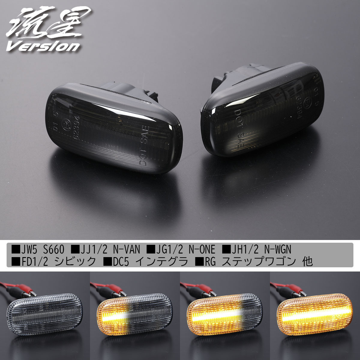 > [流れるウインカー] ES9/FD3 シビックハイブリッド LED クリスタル サイドマーカー [スモークレンズ] 流星 Eマーク取得 左右 新品 ホンダ