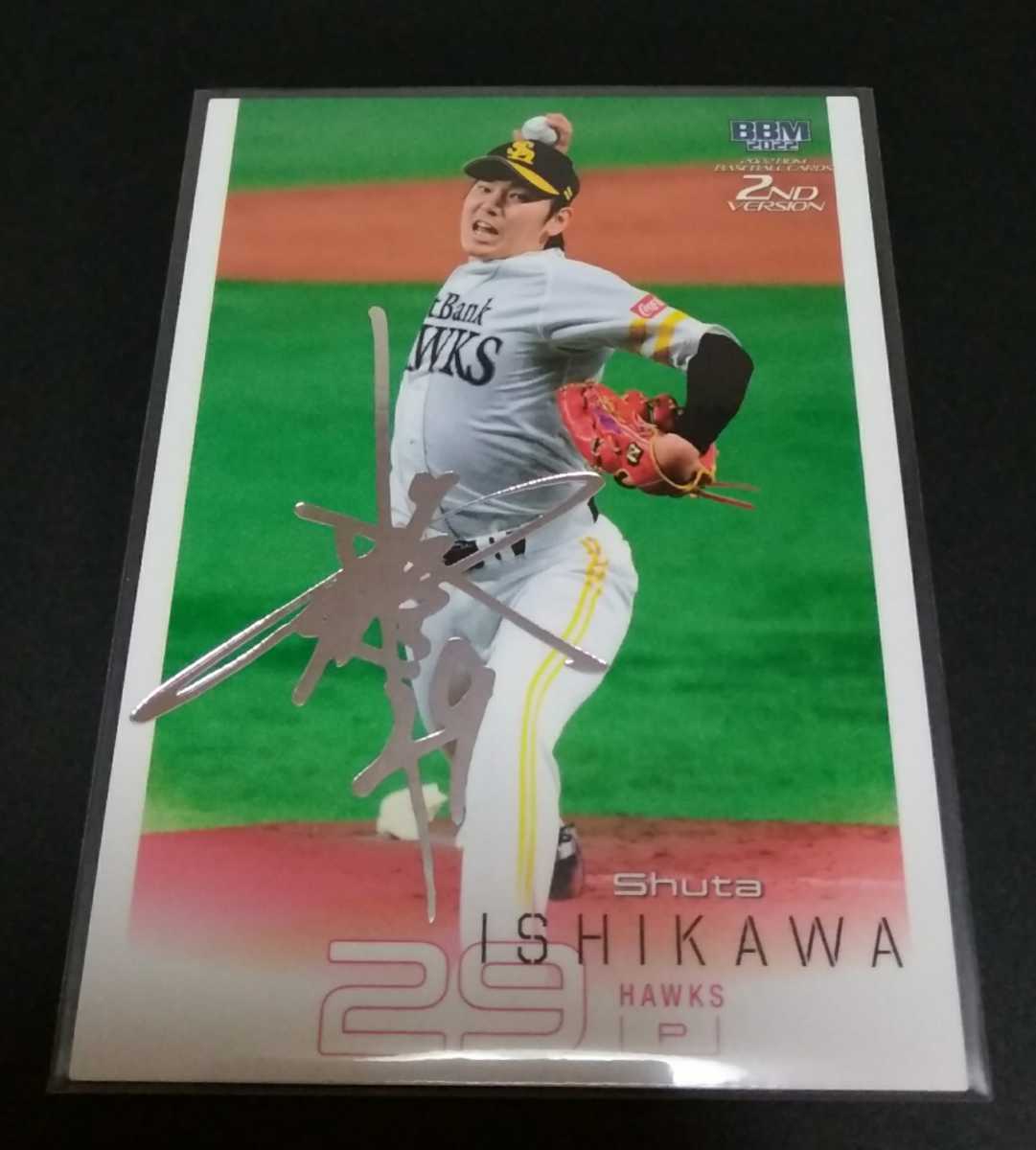 > 2022年BBM 2nd 石川柊太(ソフトバンク)銀箔サイン。No,539。