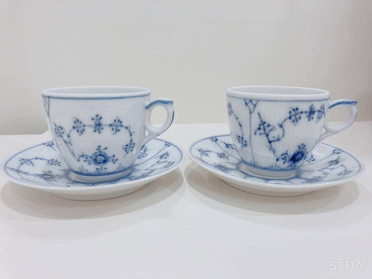 > ◆【美品】ROYAL COPENHAGEN ロイヤルコペンハーゲン ブルーフルーテッド プレイン カップ&ソーサー 2客