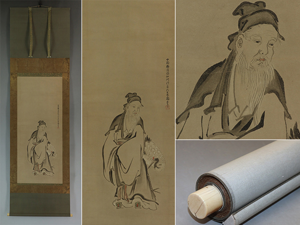 - 【真作】狩野周信(如川)【寿老人】◆紙本◆合箱◆掛軸 u06123
