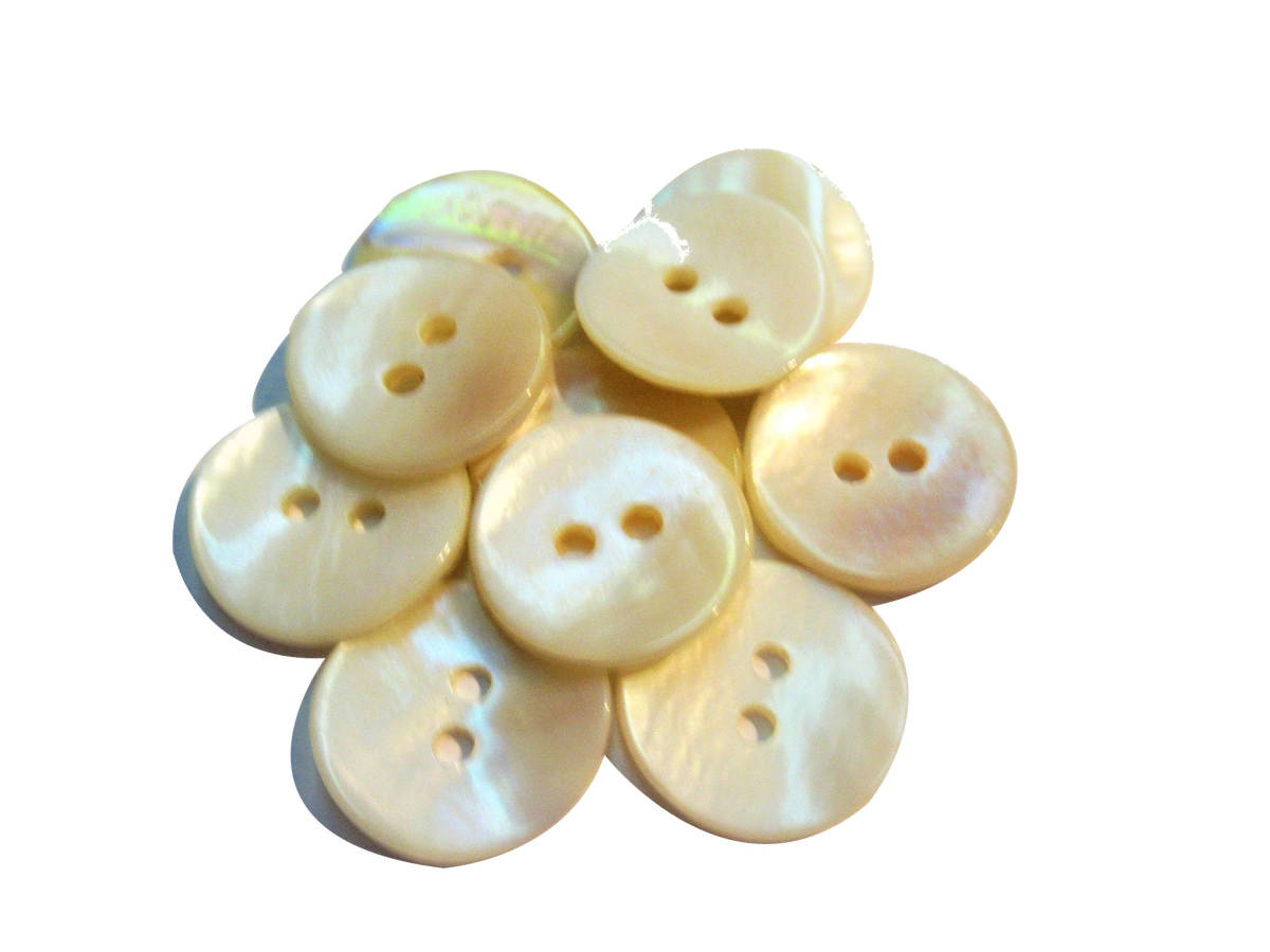 - 手芸 和洋裁用釦 天然貝ボタン 高瀬貝ボタン 皿型二つ穴ボタン 現品釦(15mm10個入り)b905-ka