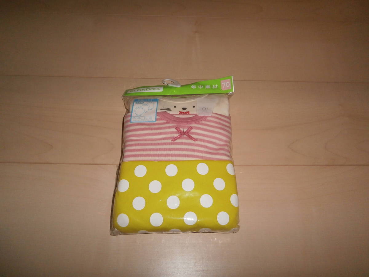 - 即決★女の子★新品★長袖ショルダーロンパース★3枚組★サイズ70 ③ピンクボーダー黄緑★赤ちゃん新生児肌着つなぎカバーオールプレオール