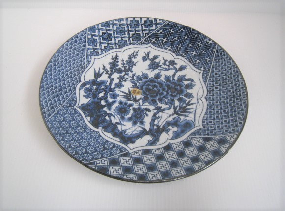 - 17N8.18-16 陶器の大皿 飾り皿 絵皿 ブルー 華山 サイズ:外径31㎝×H5㎝
