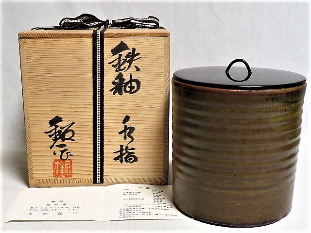 - 茶道具 鉄釉水指 水野鉐一 共箱 栞 煎茶道具
