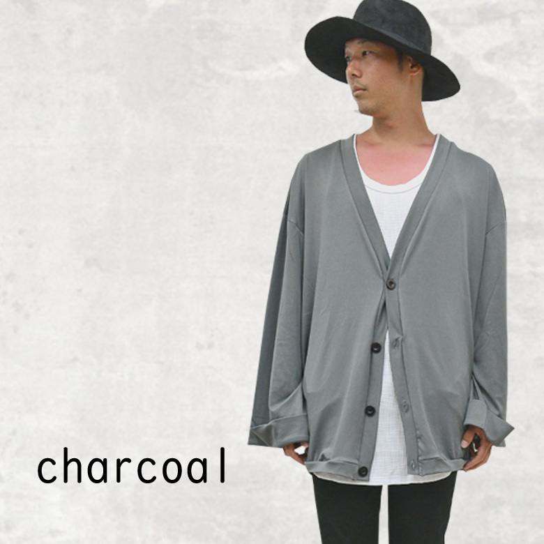 - とろみ素材ゆったりシルエット長袖カーディガン rv8604 新品チャコールL