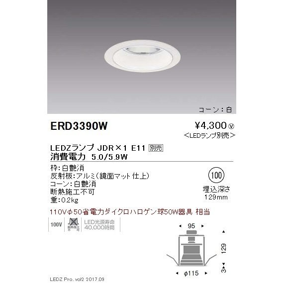 > ★ENDO★遠藤照明 ERD3390W + RAD727F 電球セット 4000K ベースダウンライト 非調光タイプ リビング 玄関 トイレ 電工 電設