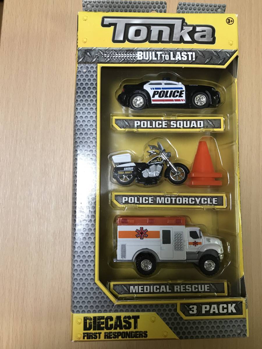 - 🏁トンカ/TONKA/DIECAST FIRST RESPONDERS 3-PACK/POLICE SQUAD & POLICE MOTORCYCLE & MEDICAL RESCUE