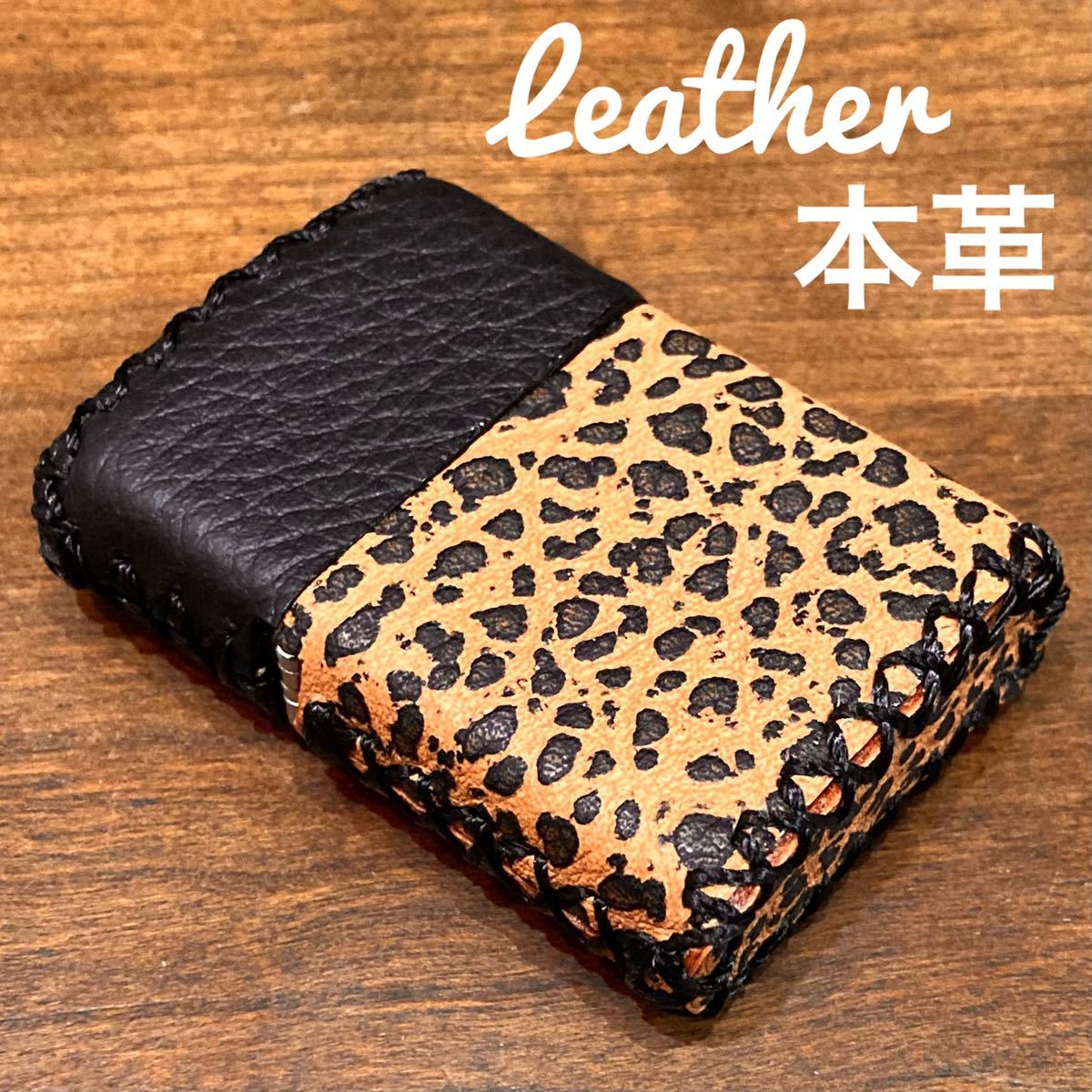 - [本革] zippo用 レザーカバー 革ケース 革巻き ジッポー レオパード柄×ブラック
