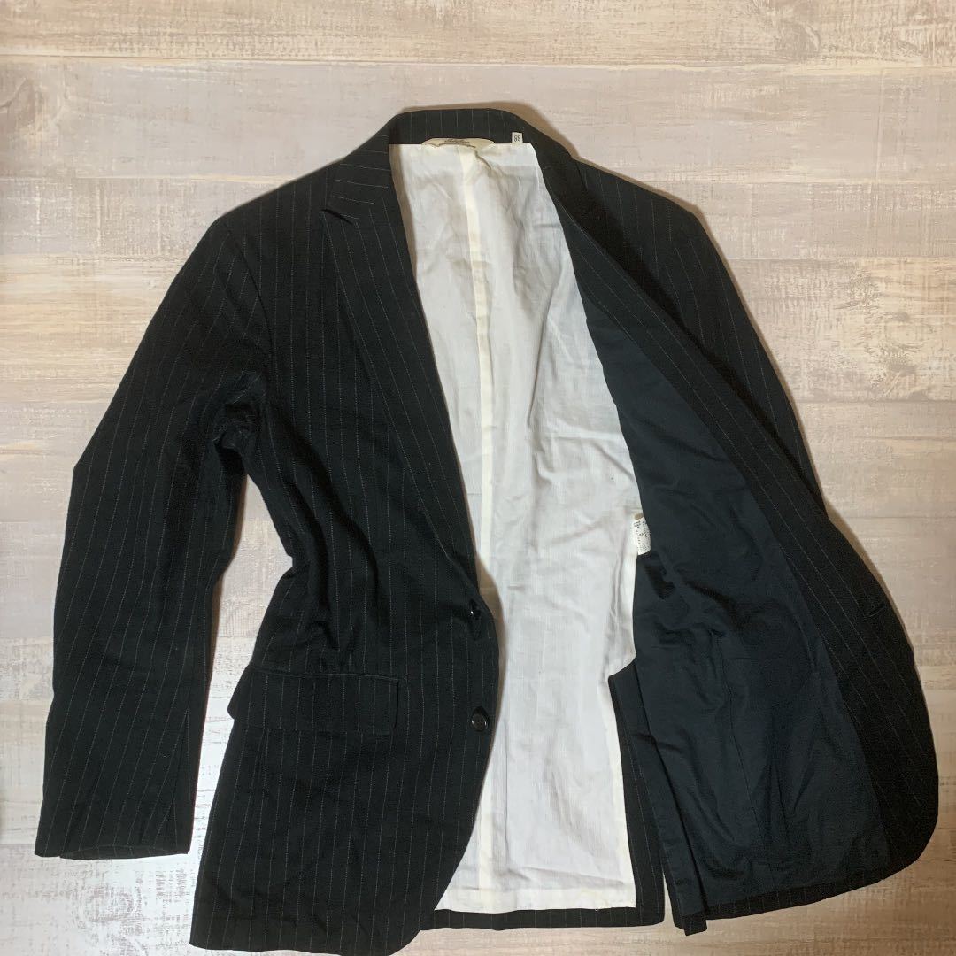 - 【日本製】EDIFICE ストライプ テーラード ジャケット エディフィス ブラック 黒 サイズ38 M相当 メンズ ビンテージ ビジネス トラッド