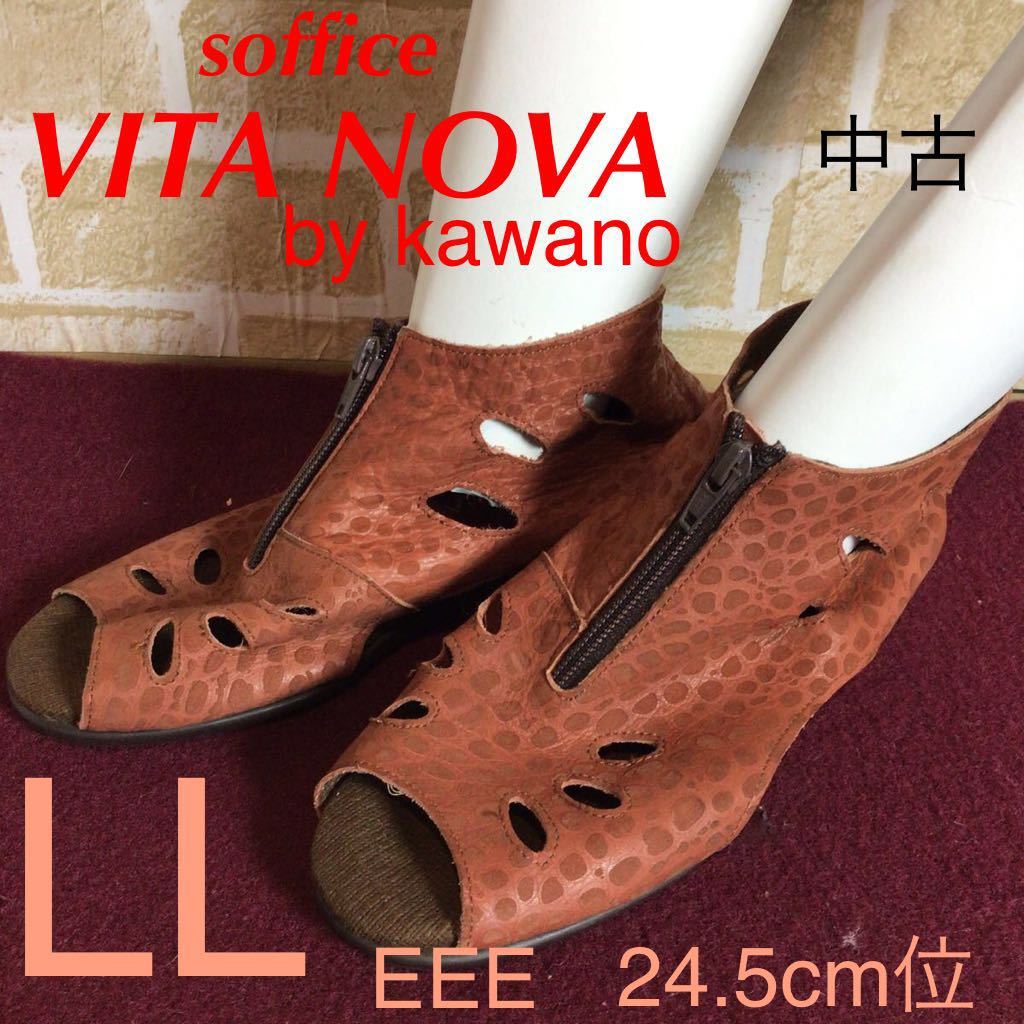 - 【売り切り!送料無料!】A-224 VITA NOVA! ヴィタノーヴァ!サンダル!ブラウン!LLサイズ 24.5cm位!前ファスナーあり!本革!日本製!中古!