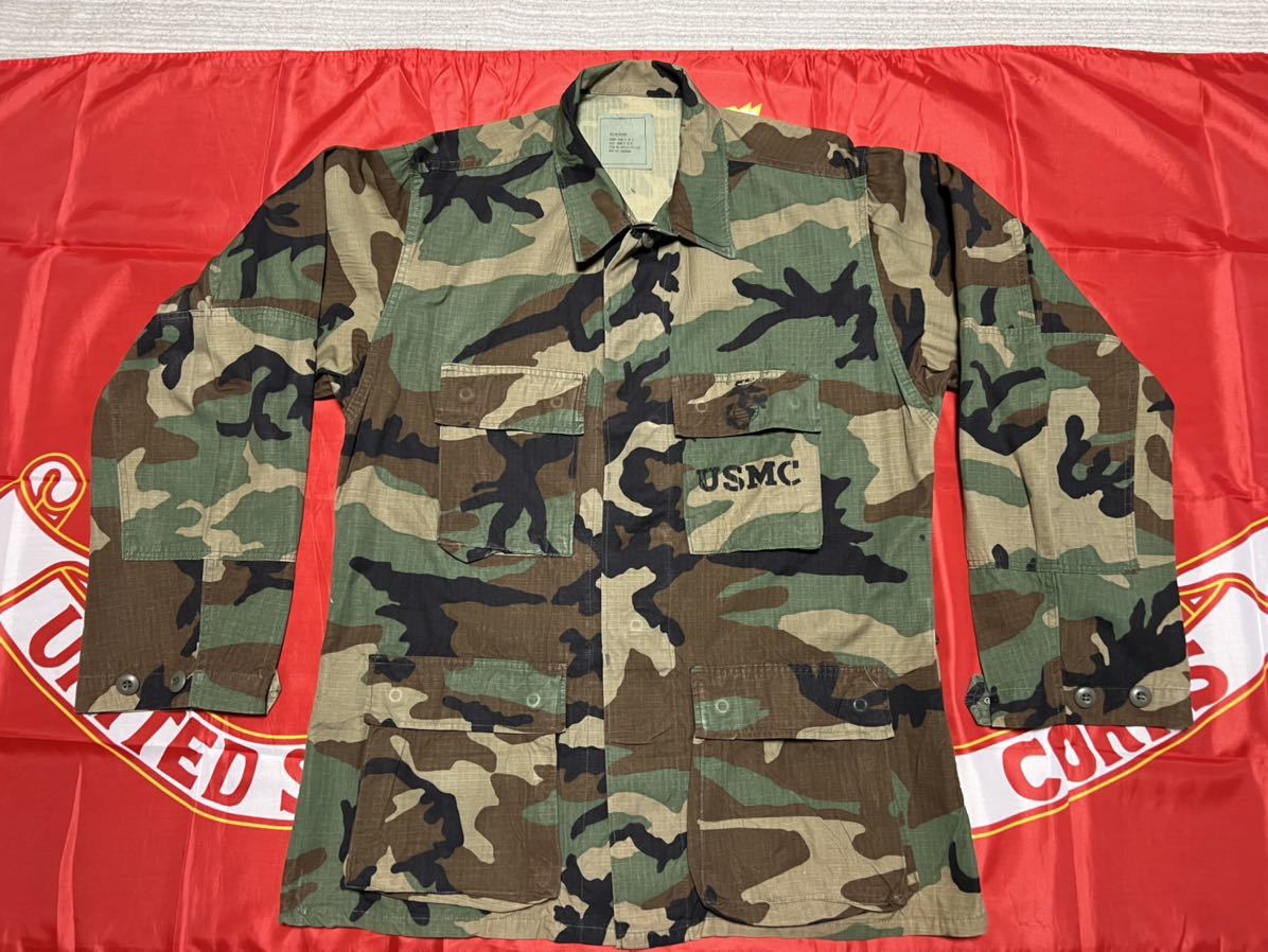 - 中古美品 made in USA USMC HOT WEATHER WOODLAND CAMOFLAGE PETTERN, COMBAT COAT 1985年製 ビンテージMEDIUM REGULAR デッドストック
