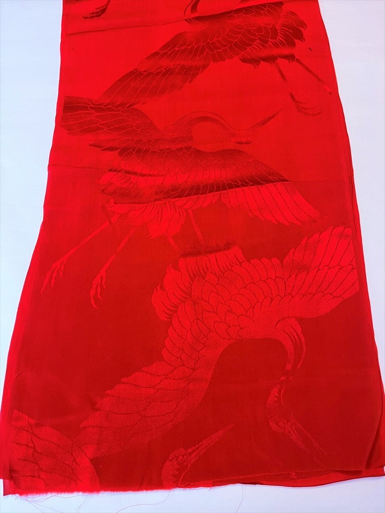 - 花とら●リサイクル アンティーク端切れ 赤 飛鶴 大 リメイク 素材 細工用 220916ーB
