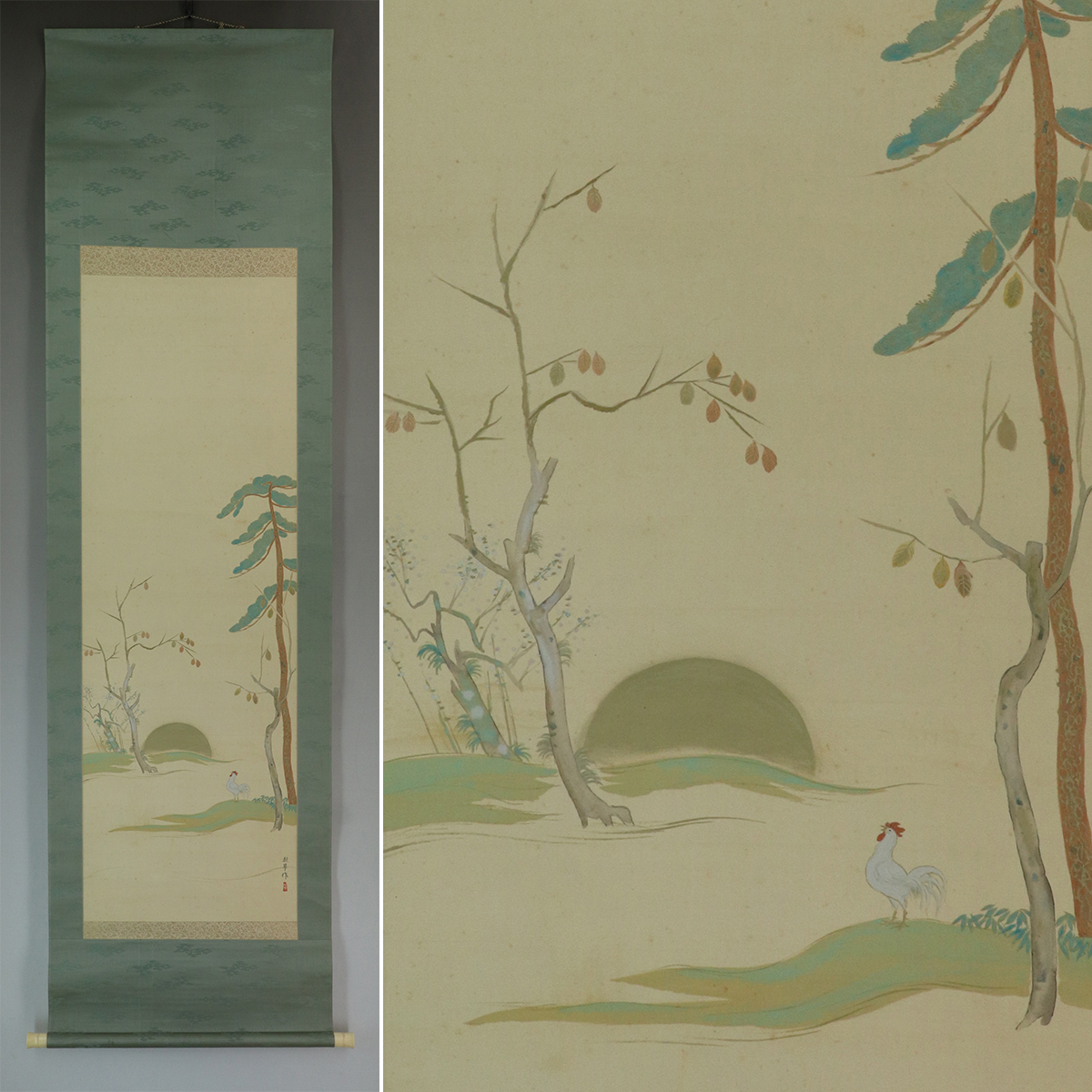 - 【肉筆】秋草銘【日乃出図】◆絹本◆合箱◆掛軸 u06027