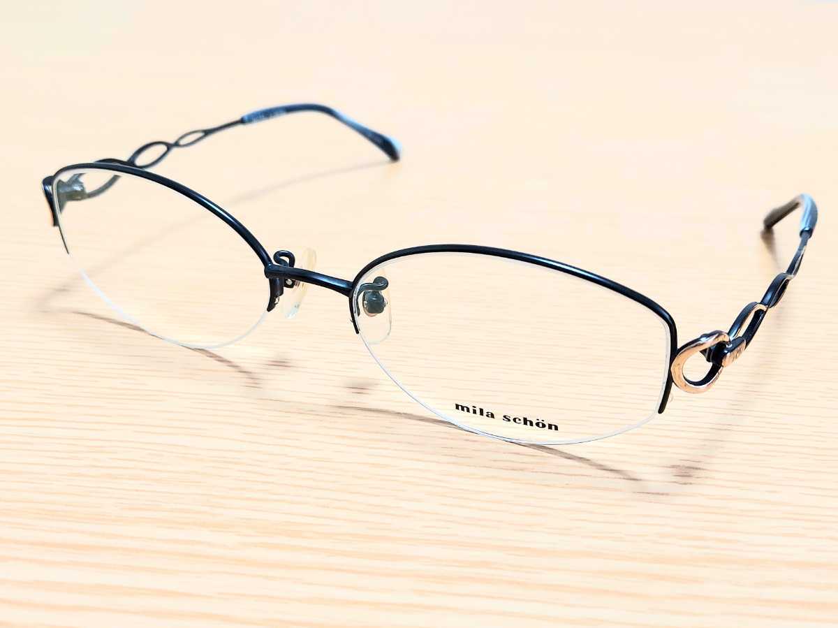 - 新品 mila schon ミラショーン ブランド メガネ 眼鏡 高級感 オシャレ 上品 ハーフリム チタン 軽い ネイビー ゴールド
