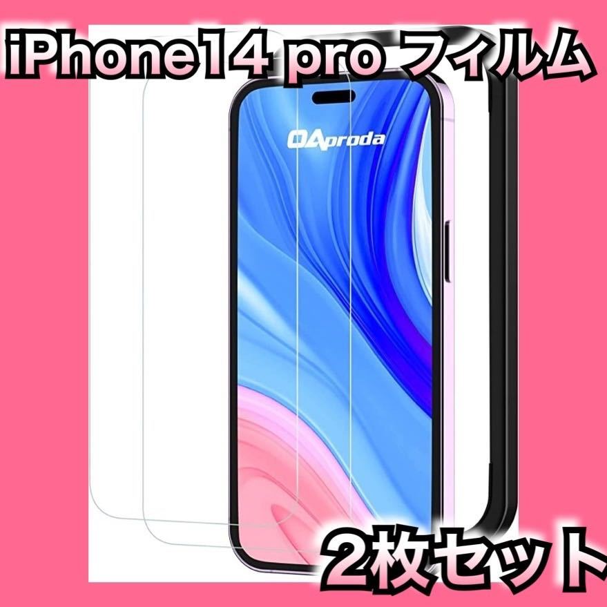 > ガラスフィルム iPhone14 pro 用 全面 強化 保護フィルム iPhone 14 プロ 用 ガイド枠付き 2枚セット