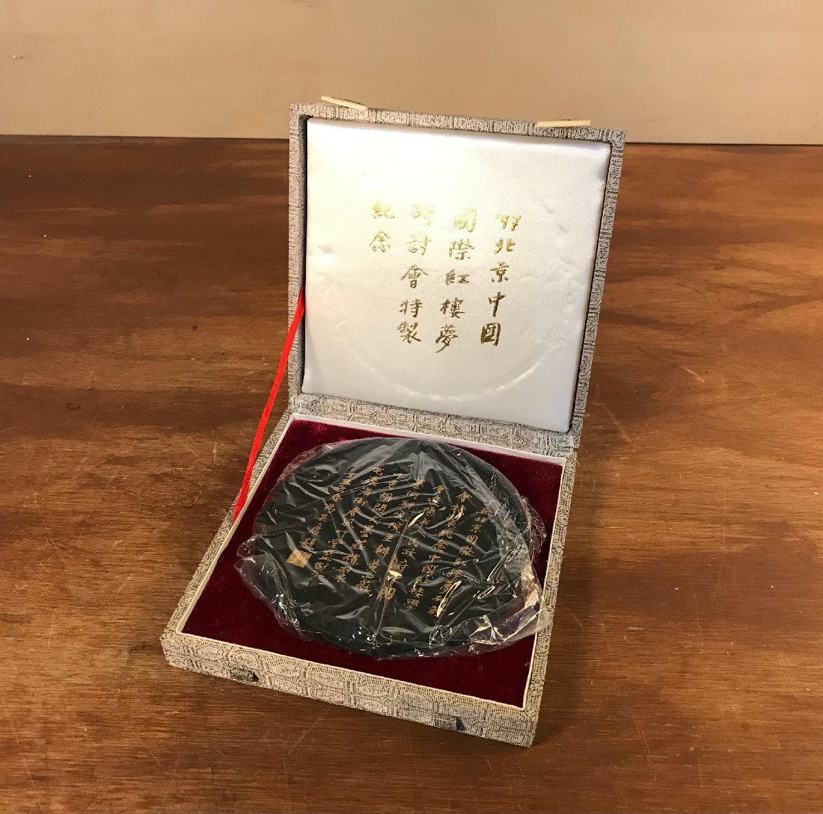 > HH-4662 ■送料無料■ 丁丑北京国際紅楼夢研討会特製紀念 馮其庸題 中国 美術 墨 古墨 唐墨 円形 書道具 レトロ 308g ●未使用品 /くYUら
