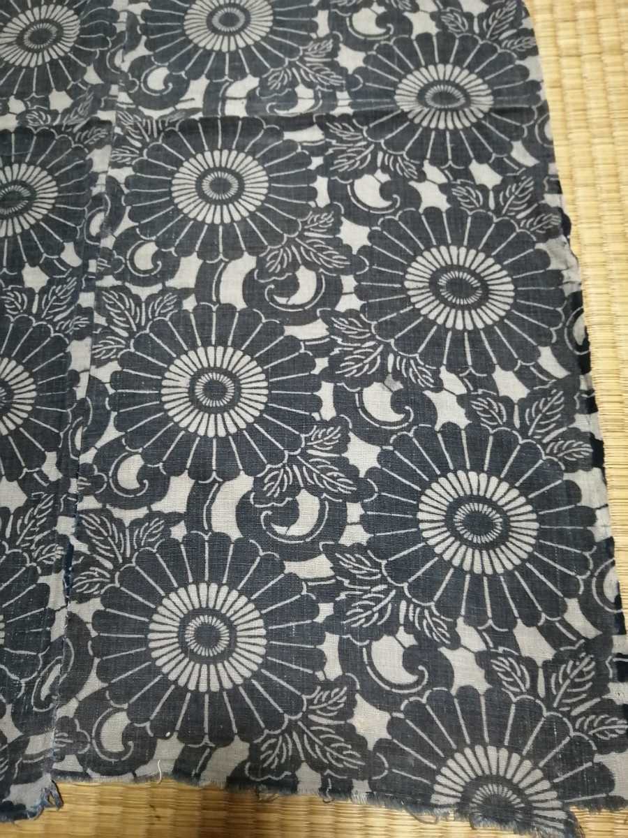 - 型染め 菊 二巾 江戸後期 木綿 藍染め 機織り 古布 古着 リメイク 木綿口伝 福井貞子 08N77u3