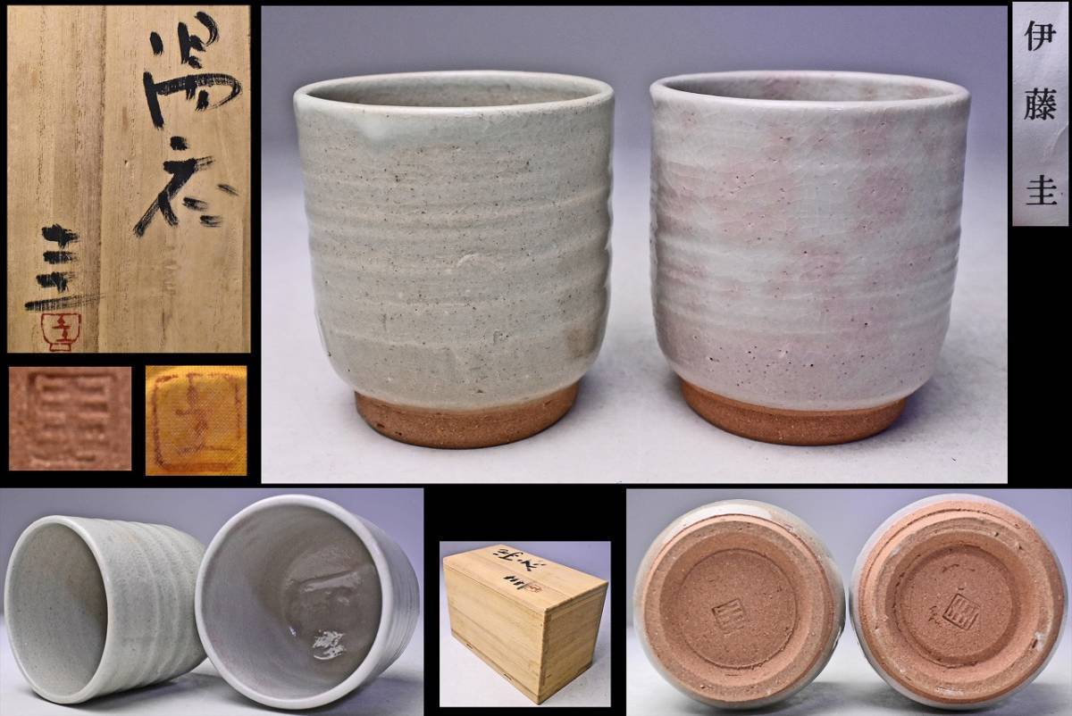 > 伊藤圭 ★ 湯呑 二客 ★ 共箱 共布 栞 ★ 信楽焼 ★ 圭峰窯 ★ 御本の緋色に暖かみのある逸品 ★