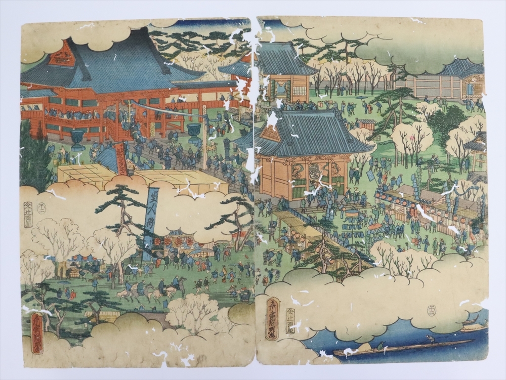 - 【真作】 『 国郷画 浮世絵 版画 2枚綴り』【S0054蔵出し】
