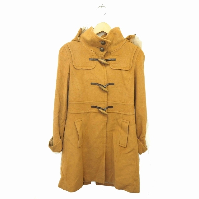 - ルスーク Le souk コート アウター ダッフル ミドル 膝下丈 フード ラクーンファー ウール 36 茶 ベージュ /TT33 レディース