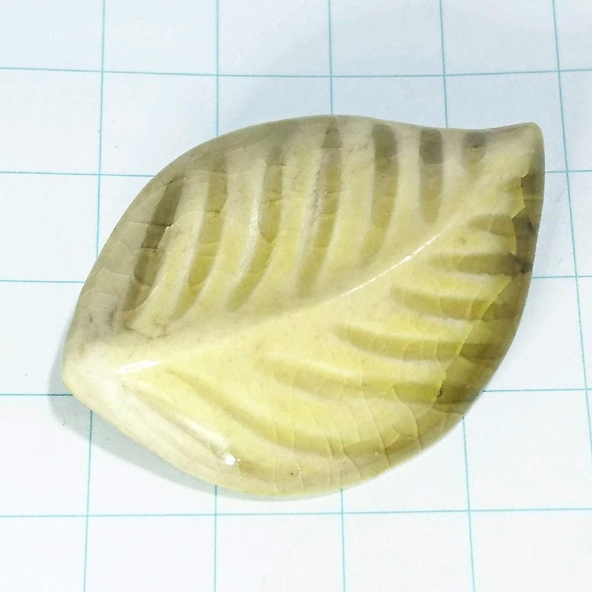 - 送料無料)ビンテージ☆陶器 葉っぱモチーフ☆アンティークブローチ A12065