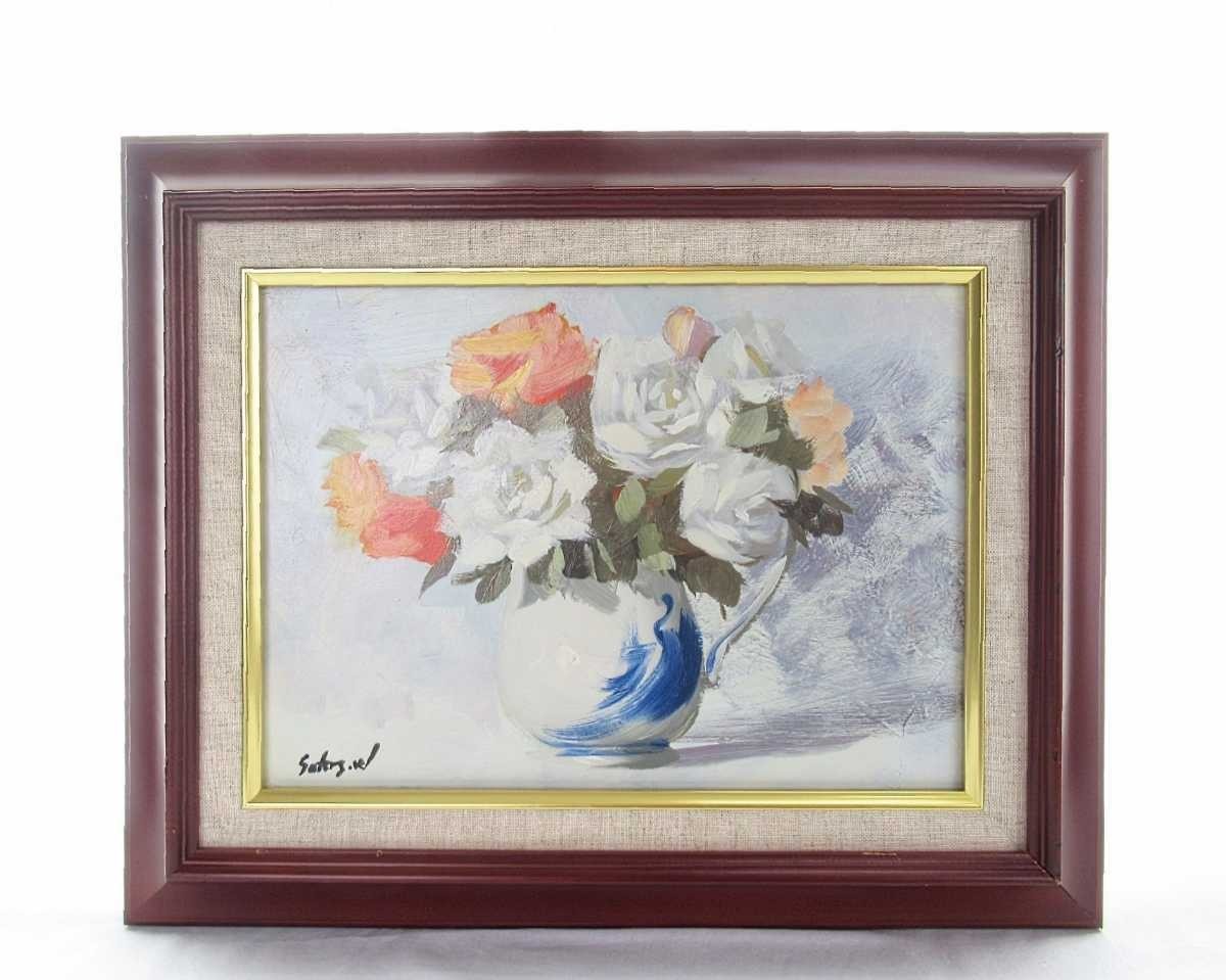 - 真作 和田悟 油彩「ばら」画寸 33cm×24cm F4 広島県出身 象元会会員 リズム感ある大胆なタッチで美しい花に動きを与えている秀作 4766