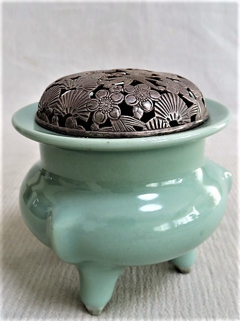 - 青磁香炉 三足香炉 銀火屋 茶道具 香道具. No.1117-1021