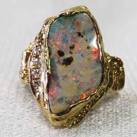 > 【値下げ交渉は質問欄より】ユニークなデザイン!ボルダーオパール5,33CT☆K18YG製デザイン指輪☆逸品リング#14号