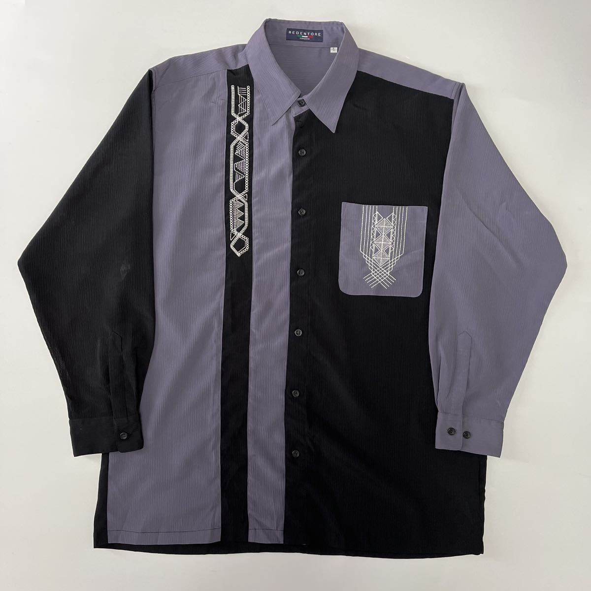 - REDENTOLE 長袖シャツ バイカラー 刺繍 レトロ L
